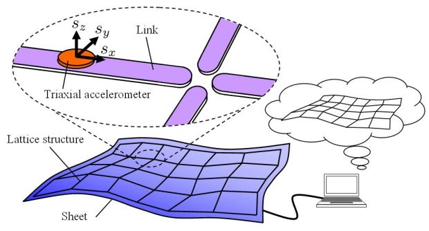 ![]() Fig.1 Illustration of 3DCS There is a lattice structure in the 3DCS, and a triaxial accelerometer is attached on each link. The whole configuration is estimated using the gravity vector measured by accelerometers. |