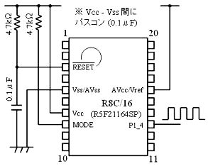 プログラムをマイコンに書き込んだ後、(プログラム書き込みは「R8C/Tiny 開発環境」参照)