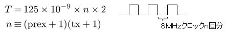 ここで n は、prex レジスタと tx レジスタで設定するカウント数である。