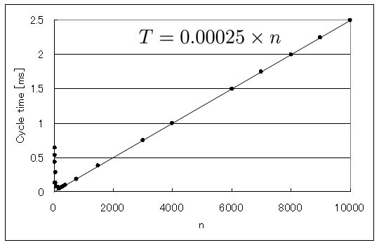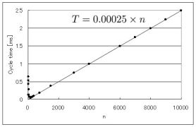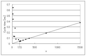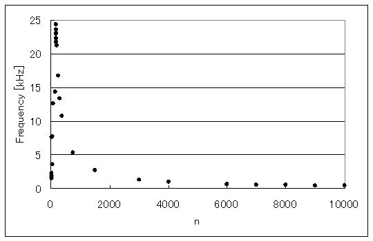 図5 カウント数nと周波数の関係。グラフをクリックすると拡大図。